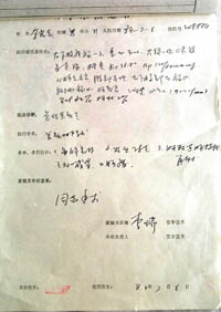 李洪志曾住院手術(一) ![]() 8月3日,吉林省人民醫(yī)院發(fā)現李洪志曾在該醫(yī)院做過闌尾炎手術的住院病歷。李洪志在1984年7月8日早晨突 發(fā)急性化膿性闌尾炎,住進吉林省人民醫(yī)院普通外科,發(fā)燒38.9度,于當天下午實施闌尾切除手術,住院10天。由于當 時醫(yī)生筆誤,錯將李洪志寫作“李宏志”,根據病歷上的患者年齡、工作單位、家庭住址及家屬(李妻)的手術簽字,可確定 患者即李洪志。這是李洪志手術時,其妻簽署的術前文件。經公安部門鑒定,簽字確為李洪志妻子李瑞親筆所簽。張寶江攝( 新華社稿 傳真照片) |