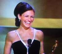 圖文:朱莉亞·羅伯茨獲封奧斯卡影后 2001年3月26日 12:40 中新網(wǎng)洛杉磯3月25日消息:(記者 陳建)奪獎(jiǎng)呼聲極高的“大嘴美人”朱莉亞·羅伯茨(Julia Roberts)憑《永不妥協(xié)》(ERIN BROCKOVICH)一片如愿榮登第73屆奧斯卡影后寶座。 她曾以主演《漂亮女人》、《我最好朋友的婚禮》、《諾丁山》等浪漫輕喜劇聞名;但朱莉亞·羅伯茨稱(chēng),《永不妥協(xié)》是自己“演得最棒的片子,因?yàn)榻巧挥谔魬?zhàn)性,十分飽滿(mǎn)”。 這個(gè)獎(jiǎng)項(xiàng)的提名者還包括《政界風(fēng)云》的瓊·阿倫、《濃情巧克力》的法國(guó)女星朱麗葉·比諾什、《你可信任我》的勞拉·琳妮和《夢(mèng)想悲歌》的艾倫·伯絲汀。 |