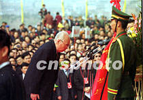 圖文:海內(nèi)外華夏子孫公祭黃帝陵 2001年4月6日 08:01 ![]() 陜西黃帝陵大祭祖。中新社記者 宋吉河 攝 ![]() 王光英向軒轅黃帝畫像敬獻花籃。中新社記者 宋吉河 攝 ![]() 萬國權(quán)向軒轅黃帝畫像敬獻花籃。中新社記者 宋吉河 攝 中新社西安四月五日電(王彥平)清明節(jié)的黃帝陵,雨后初霽,陽光普照,農(nóng)歷辛巳年公祭軒轅黃帝典禮今天在此隆重舉行。 今天在象征九五之尊的九點五十分,公祭典禮正式開始。全場肅立后,代表三十四個省、市、自治區(qū)和特別行政區(qū)的三十四響禮炮響起,人們的目光投向空中,仿佛在聆聽中國十二億九千五百萬華夏子孫和眾多海外同胞向中華人文初祖所要表達的殷殷懷念與追思。 海內(nèi)外各界參祭代表,在入口廣場肅立靜候片刻后,隨古樸、莊嚴的祭祀儀俯隊,過軒轅橋觀龍尾道,來到軒轅廟前。 隨后鼓樂齊鳴,在威武的禮儀士兵引領(lǐng)下,全國人大常委會副委員長王光英、全國政協(xié)副主席萬國權(quán)等分別向黃帝像敬獻花籃。 在身著盛裝的禮儀小姐們向始祖敬獻了鮮花、時果等祭品后,陜西省省長程安東恭讀了辛巳年清明公祭軒轅黃帝祭文。 最后,所有參祭的各界代表向黃帝像行三鞠躬大禮。(完) |