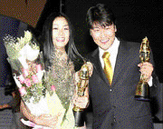 圖文:宋康昊高素榮分獲韓國大鐘獎男女主角 2001年4月26日 10:41 ![]() 中新網(wǎng)漢城4月26日消息:韓國大鐘獎頒獎儀式于昨日下午在漢城世宗文化會館大禮堂舉行,影片《共同警備區(qū)JSA》主人公宋康昊獲得最佳男主角獎,最佳女主角獎則是《一天》主角高素榮。 今年最佳影片獎歸屬樸贊郁導演的《共同警備區(qū)JSA》;韓志升執(zhí)導的影片《一天》則囊括了導演獎、最佳女主角獎、審議委員會特別獎、女配角獎等主要獎項。而近掀起韓國影壇颶風的影片《朋友》卻與獎項失之交臂。 宋康昊表示,“一半的榮譽應該屬于一同出演的李柄憲”,并跑到觀眾席與李炳憲熱烈擁抱。 高素榮雖被譽為忠武路黑馬,但是一直籠罩在沉銀河和全杜妍的陰影之下。此次綞憑借《一天》登上領獎臺。 通過網(wǎng)民評選的男女印象獎獲得者分別為李炳憲和沉銀河。 據(jù)韓國中央日報報道,《共同警備區(qū)JSA》(作品獎、導演獎、音響獎、美術獎)、楊潤浩(音譯)導演的《Libera ME》(攝像獎、照明獎、剪輯獎、特殊效果獎)以及《一天》分別囊括了4大獎項。 |