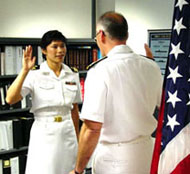 圖文:華人翁正欣將出任美太平洋司令部發(fā)言人 2001年6月4日 08:23 ![]() 中新網(wǎng)香港6月4日消息:幼年時(shí)自臺(tái)灣移民美國(guó)的現(xiàn)役美國(guó)海軍少校翁正欣,7月起將出任太平洋美軍司令部的新聞官。 據(jù)“中央社”報(bào)道,翁正欣生于云林水林鄉(xiāng),7歲隨父母移民美國(guó)。她說,她很高興到夏威夷任職,因?yàn)樗挠H戚都住在臺(tái)灣,而夏威夷離臺(tái)灣比較近。她十年前從美國(guó)海軍官校畢業(yè),今天晉升少校,同時(shí)領(lǐng)取華府天主教大學(xué)的政治學(xué)碩士學(xué)位。 翁正欣目前在五角大廈任職,職務(wù)是海軍新聞官。 她的父親翁義雄說,正欣選擇從軍,是因?yàn)樗吞郧霸诩偃粘5胶\姽傩K诘伛R里蘭州安納波利斯,太太羨慕官校女生穿著白色制服非常帥氣的樣子,正欣便決定效法,進(jìn)入海官就讀。翁義雄目前在馬里蘭州政府衛(wèi)生局任職。 翁正欣說,當(dāng)時(shí)從臺(tái)灣移民美國(guó)很不容易,她自認(rèn)能在美國(guó)成長(zhǎng)非常幸運(yùn),而選擇從軍部份是想要報(bào)效這個(gè)國(guó)家。她的丈夫約翰·桑默是她在官校的學(xué)長(zhǎng)。 |