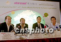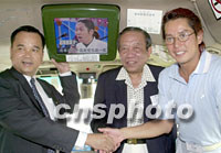 組圖:譚詠麟公司為小巴乘客提供節(jié)目 2001年08月16日 09:25 ![]() 東方魅力主席譚詠麟、東方魅力執(zhí)行董事長黃勤道(左)、綠色專線小巴總商會主席邱戊秀(右二)、冠榮董事長馬亞木(左二)在記者會上介紹有關(guān)事宜。中新社傳真 鄧慶樂 攝 ![]() 東方魅力集團(tuán)15日在香港宣布與綠色專線小巴總商會及冠榮車行有限公司攜手合作,為公共專線小巴乘客提供精彩娛樂資訊及廣告。東方魅力主席譚詠麟(右)、綠色專線小巴總商會主席邱戊秀(右)、冠榮董事長馬亞木為祝合作成功握手。中新社傳真 鄧慶樂 攝