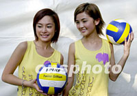 組圖:樂(lè)壇組合Twins為沙灘排球賽營(yíng)造氣氛 2001年08月23日 08:50 ![]() 樂(lè)壇女子組合Twins兩位歌手蔡卓妍(左)、鍾思桐(右)22日出席世界女子沙灘排球香港公開賽為觀眾歌唱表演,并與現(xiàn)場(chǎng)觀眾玩巨型沙灘球,增添樂(lè)趣營(yíng)造氣氛。中新社傳真 鄧慶樂(lè) 攝 ![]() 樂(lè)壇女子組合Twins兩位歌手蔡卓妍(右)、鍾思桐(左)22日出席世界女子沙灘排球香港公開賽,手持沙灘排球,表現(xiàn)健康活力形象。中新社傳真 鄧慶樂(lè) 攝