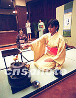 圖:日本古典文化藝術(shù)團(tuán)表演茶道 2001年09月11日 15:56 ![]() 日本古典文化藝術(shù)訪華團(tuán)日前在北京政協(xié)為中國(guó)觀眾進(jìn)行茶道表演,以展示日本獨(dú)特的古典文化藝術(shù)。中新社記者 史利 攝 |