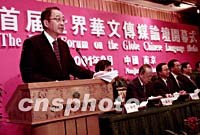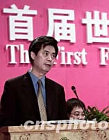 ![]() 南京市長王宏民九月十六日在紫金山下舉行的首屆世界華文傳媒論壇開幕式上致辭,向遠道而來的傳媒嘉賓表示熱烈歡迎。中新社記者 賈國榮 攝