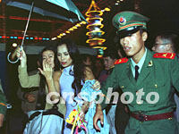 圖:韋唯在浙江湖州演出 2001年10月04日 17:34 ![]() 中國著名歌唱演員韋唯3日晚在浙江湖州演出后,由武警戰(zhàn)士護(hù)衛(wèi)從后臺(tái)走向休息室。中新社記者 趙振清 攝 |