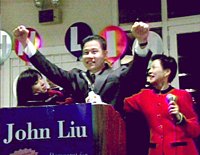 美國華裔參政開新篇 六名華人在地方選舉獲勝 2001年11月08日 10:09 ![]() 三十四歲的華裔青年劉醇逸新當(dāng)選紐約市議員,成為美國歷史上第一位亞裔市議員。當(dāng)?shù)厝A人對其當(dāng)選同聲祝賀,認(rèn)為這是華人參政史上的一個(gè)新的里程碑。(劉醇逸生于臺(tái)灣,五歲跟隨家人移民紐約。)中新社記者 陳建 攝