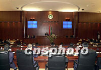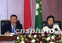 何厚鏵作澳門特區(qū)政府2002年財(cái)政年度施政報(bào)告 2001年11月21日 07:35 ![]() 澳門立法會(huì)議員二十日聽取行政長官何厚鏵所作二零零二年施政報(bào)告。中新社記者 宗金柱 攝 ![]() 澳門特區(qū)行政長官何厚鏵(左),二十日代表特區(qū)政府在立法會(huì)大樓作二零零二年施政報(bào)告。中新社記者 宗金柱 攝