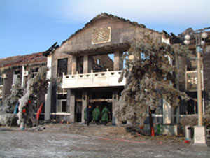 圖文:呼和浩特賓館大火 副市長等五人被燒死 2001年12月20日 10:10 ![]() 圖為火災(zāi)后的呼和浩特賓館現(xiàn)場(chǎng) 中央電臺(tái)圖片 ![]() 消防車輛現(xiàn)場(chǎng)救火 新華網(wǎng)圖 中新網(wǎng)呼和浩特12月20日消息:19日晚23時(shí)30分左右,內(nèi)蒙古自治區(qū)政府呼和浩特賓館發(fā)生一起重大火災(zāi)。 據(jù)新華社報(bào)道,在火災(zāi)中,呼和浩特市委常委、副市長林選才,北京瑪拉沁飯店副經(jīng)理史子義,呼和浩特市接待辦副主任王安明3人不幸燒死,另有17人燒傷,2人失蹤。 呼市消防支隊(duì)政委張學(xué)榮介紹,火災(zāi)由賓館北樓一樓舞廳燒起,現(xiàn)總共二層的北樓已全部坍塌。 事故發(fā)生后,內(nèi)蒙古自治區(qū)副主席王鳳歧即趕赴現(xiàn)場(chǎng)指揮救火工作,出動(dòng)了180多人的消防隊(duì)伍。今日凌晨4時(shí)左右大火基本撲滅。 事故原因正在進(jìn)一步調(diào)查之中。(王占義吳獻(xiàn)) 呼和浩特火災(zāi)最新消息:3人燒死還有2人失蹤 中新網(wǎng)呼和浩特12月20日消息:19日晚23時(shí)30分左右,內(nèi)蒙古自治區(qū)政府呼和浩特賓館發(fā)生一起重大火災(zāi),新華社最新的消息說,除呼和浩特市委常委、副市長林選才,北京瑪拉沁飯店副經(jīng)理史子義,呼和浩特市接待辦副主任王安明3人被燒死外,另有17人燒傷,2人失蹤。 呼和浩特賓館北樓始建于1953年,次年投入使用。這座俄式建筑為兩層磚木結(jié)構(gòu),是集餐飲、住宿、娛樂為一體的綜合性公共場(chǎng)所。樓的東西跨度為140米,南北寬60米,建筑面積6000平方米,其中過火面積3000平方米。一樓有客房28間,二樓有35間,一樓的東北角為600平方米的皇都歌舞廳,大火就是由這里燒起的。 事故發(fā)生后,內(nèi)蒙古自治區(qū)副主席王鳳岐即趕赴現(xiàn)場(chǎng)指揮救火工作,出動(dòng)了180多人的消防隊(duì)伍。今日凌晨4時(shí)左右大火基本撲滅。 殘?jiān)珨啾诰跋笃鄳K呼和浩特賓館火災(zāi)現(xiàn)場(chǎng)目擊 中新網(wǎng)北京12月20日消息:呼和浩特賓館12月19日午夜時(shí)分發(fā)生的重大火災(zāi),造成3人死亡17人燒傷,另外尚有幾人下落不明。20日凌晨,新華社記者聞?dòng)嵹s往火災(zāi)現(xiàn)場(chǎng)。記者現(xiàn)場(chǎng)看到,殘?jiān)珨啾诰跋笃鄳K。 呼和浩特賓館地處市中心地帶的迎賓北路西側(cè)。昨天一日一夜大雪過后,通往賓館幾百米的路上成了冰河。記者只好沿路邊踏深雪前行。迎賓路口有警察把守,車輛禁止進(jìn)入。還沒進(jìn)入賓館大院,遠(yuǎn)遠(yuǎn)地就聽見消防車刺耳的聲音。在賓館大門口,映入眼簾的是地上飄零的彩帶、彩旗、紅燈籠。這些迎接圣誕、元旦節(jié)日的喜慶標(biāo)志在此刻顯得異常刺眼。一看就知道這兒剛剛發(fā)生過災(zāi)難。 兩位眼角流淚的婦女互相攙扶著向大門口走來,記者詢問得知他們是賓館的工作人員。其中的一位抹著眼睛簡短地告訴記者,火災(zāi)大約是在1 9日晚11點(diǎn)20分從舞廳燒起的。 院子里停滿了消防車輛。賓館北樓大半個(gè)已成一個(gè)空架,樓頂被大火燒塌,樓的廢墟里冒出陣陣濃煙。這是一座建于20世紀(jì)50年代的兩層磚木結(jié)構(gòu)俄式建筑,記者昨天上午剛在這座樓的二樓會(huì)議室開過自治區(qū)整頓市場(chǎng)秩序的一個(gè)會(huì)議,誰也不會(huì)想到現(xiàn)在這里全成了廢墟。 呼市消防支隊(duì)政委張學(xué)榮站在廢墟前告訴記者,接到報(bào)警后,消防部門共出動(dòng)了36輛消防車、258人的撲火隊(duì)伍,到凌晨4時(shí)30分已將大火基本撲滅。他說樓的后面有兩個(gè)氟立昂儲(chǔ)罐,要是大火蔓延過去后果不堪設(shè)想。 在記者與張政委交談時(shí),過來幾位客人說,他們的一位朋友下落不明。其中的一位告訴記者,他們來自烏蘭察布盟的集寧市,是來自治區(qū)開經(jīng)濟(jì)工作會(huì)的。他們的同伴集寧市計(jì)委主任就住在北樓二樓。昨天晚上,當(dāng)住在西樓的他們幾個(gè)聞知北樓著火時(shí),便立即跑過去救人。他們找來一個(gè)梯子,攀上去砸開同伴住的房間的窗戶,不料里面竄出濃煙,他們只好迅速撤離,同伴的下落至今不明,他們臉上布滿焦急的神情,請(qǐng)求消防隊(duì)員再到里面找一找。 記者看幾名消防隊(duì)員走進(jìn)樓內(nèi)尋人,忙緊跟而入,但進(jìn)入門口時(shí)被張政委大聲叫。骸澳悴灰^去,這大樓都燒酥了,我們都不敢進(jìn)去!庇浾咧缓猛嘶亍_^了一會(huì),尋人的消防隊(duì)員走出來無奈地說:“一樓還能看清楚,但二樓里面全是灰燼,啥也看不出來! 上午7時(shí)許,內(nèi)蒙古自治區(qū)主席烏云其木格、區(qū)委副書記楊利民、秘書長任亞平、呼和浩特市委書記楊晶、自治區(qū)副主席王鳳岐、牛玉儒等先后趕往火災(zāi)現(xiàn)場(chǎng),并迅速成立了以王鳳岐為組長的火災(zāi)事故調(diào)查小組。火災(zāi)的原因正在調(diào)查之中。(吳獻(xiàn)錢詠虹)(完) 呼和浩特火災(zāi)現(xiàn)場(chǎng)又發(fā)現(xiàn)2死者死亡人數(shù)增至5名 中新網(wǎng)呼和浩特12月20日消息:呼和浩特賓館火災(zāi)現(xiàn)場(chǎng)又清理出2名遇難死者。到今天下午3點(diǎn),火災(zāi)死亡人數(shù)增加至5人。 新華社記者在火災(zāi)現(xiàn)場(chǎng)看到,內(nèi)蒙古自治區(qū)和呼市兩級(jí)公安、消防和有關(guān)部門的救助人員正在清