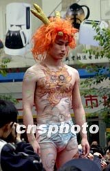 圖:模特赤身二月寒風中展示人體彩繪 2002年02月05日 10:19 ![]() 廣州一名男模特赤體在二月寒天中展示身上的彩繪,意在祈望新春的人們更具“龍馬精神”。中新社記者 梁永強 攝