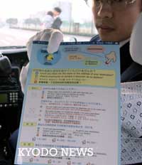 日本出租車以四國語言接待客人 其中包括中文 2002年03月12日 08:36 ![]() 用四國語言記有付錢方法等內(nèi)容的“輕松乘坐出租車傳單”(共同社)