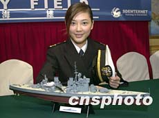 圖:應采兒為網上游戲《諜海雄師》出任代言人 2002年03月19日 19:37 ![]() 新晉女影星應采兒19日在香港為網上游戲《諜海雄師》出任代言人舉行記者會,應采兒一身海軍服飾并加上戰(zhàn)艦模型,頗具威風。中新社傳真 鄧慶樂 攝