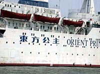 圖:巴拿馬“東方公主”郵輪在廣州扣押 2002年04月09日 19:12 ![]() 四月八日下午,廣州海事法院根據(jù)“東方公主”輪五十一名船員的海事請(qǐng)求保全申請(qǐng),發(fā)出扣押令,在廣州港泥洲頭水域扣押了該輪,以解決船員工資被拖欠問題。中新社圖 胡后波 攝