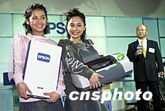 組圖:少女組合Twins展示EPSON新型號產(chǎn)品 2002年04月17日 08:12 ![]() 少女組合Twins16日出席《EPSON至出色組合》記者會,Twins獲委任EPSON香港區(qū)新一代代言人,EPSON香港有限公司董事長北原敬三先生(后)分別向Twins送上EPSON彩色影像掃描器及彩色噴墨打印機。中新社圖 鄧慶樂 攝