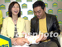 組圖:影星劉青云夫婦為實(shí)惠新店開(kāi)幕剪彩 2002年04月20日 20:22 ![]() 影視紅星劉青云、郭藹明兩夫婦20日出席實(shí)惠家居用品新店開(kāi)幕,實(shí)惠集團(tuán)致送BB公仔予兩夫婦,喻意祝兩位早生貴子。劉青云為“BB”公仔試穿衣服,引得身旁的郭藹明哈哈大笑。鄧慶樂(lè) 攝