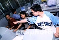 圖:臺灣學(xué)生向家人傳達(dá)在大陸的生活訊息 2002年04月23日 10:56 ![]() 在泉州華僑大學(xué)有眾多來自臺灣的大學(xué)生,課余時間他們用電腦向家人傳達(dá)在大陸生活訊息。圖為韓開鈞(右)與印尼女同學(xué)一起交流電腦信息。中新社圖 陳勇 攝