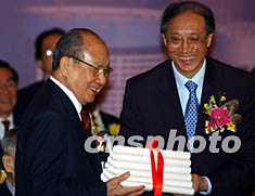 ![]() 擁有一百萬潮藉人口、一百多個潮藉社團的香港,4月23日成立了“香港潮屬社團總會”, 主席陳偉男向出任榮譽會長的香港長實集團主席李嘉誠頒發(fā)證書。中新社記者 任晨鳴 攝