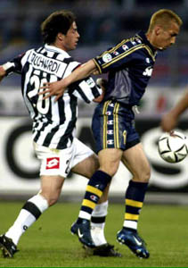 意大利杯:中田替補(bǔ)進(jìn)球 帕爾馬1:2不敵老婦人 2002年04月26日 09:19 ![]() 中新網(wǎng)北京4月26日消息:在北京時(shí)間今天凌晨進(jìn)行的意大利杯決賽首回合比賽中,老婦人尤文圖斯憑借板凳球員烏拉圭人薩拉耶塔的出色發(fā)揮,在主場2:1力擒帕爾馬。日本球星中田英壽本場比賽發(fā)揮出色,為帕爾馬攻入一球。 頂替特雷澤蓋上場的薩拉耶塔一個(gè)人就決定了這場比賽的結(jié)果。他先是在第6分鐘時(shí)在禁區(qū)內(nèi)為本隊(duì)獲得點(diǎn)球機(jī)會(huì),由阿莫魯索操刀命中,尤文圖斯1:0。又在下半場57分鐘時(shí),利用頭球?yàn)楸娟?duì)貢獻(xiàn)一粒入球。 中田英壽在70分鐘時(shí)才獲得出場機(jī)會(huì),當(dāng)時(shí)帕爾馬已經(jīng)0:2落后。上場不久,中田就有一腳精彩的射門,可惜被卡里尼封出底線。補(bǔ)時(shí)階段,中田英壽接馬爾基奧尼妙傳傳,一記右腳凌空為帕爾馬扳回一分。 賽后,尤文圖斯主帥銀狐里皮說:“我們應(yīng)該獲勝,因?yàn)樵谡麄(gè)上半場和下半場的大部分時(shí)間里我們都占據(jù)了場上優(yōu)勢”! 而帕爾馬教練卡爾米尼亞尼也對比賽結(jié)果表示滿意,“中田在補(bǔ)時(shí)階段的進(jìn)球,又讓我們?nèi)计鹆藠Z取意大利杯的希望”。 雙方第二回合較量將于六月十一日在帕爾馬的主場進(jìn)行。 是役雙方出場陣容如下: 帕爾馬(3-4-2-1):塔法雷爾/杰圖(古倫科,第46分鐘),博戈西昂,貝納里沃/薩托,阿皮亞(中田英壽,第73分鐘),拉穆齊,迪亞納/馬爾基奧尼,米庫/哈坎-蘇克(博納佐利,第58分鐘) 尤文圖斯(4-3-1-2):卡里尼/圖拉姆、圖多爾(蒙特羅,第46分鐘),比林德利,帕拉馬蒂/C.澤諾尼,孔蒂,戴維斯(塔奇納迪,第58分鐘)/內(nèi)德維德(贊布羅塔,第46分鐘)/薩拉耶塔,阿莫魯索