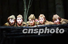 通訊:話劇《這里的黎明靜悄悄》的三大看點(diǎn) 2002年04月27日 23:34 ![]() ![]() 一部由前蘇聯(lián)作品改編的話劇《這里的黎明靜悄悄》二十六日晚在北京首都劇場(chǎng)進(jìn)行最后一次排演,這是中國(guó)國(guó)家話劇院成立后推出的首部大戲,張豐毅、凱麗等在劇中擔(dān)任主演。中新社圖 武仲林 攝