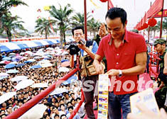 圖:任達(dá)華為珠海福利事業(yè)獻(xiàn)愛(ài)心 2002年05月20日 19:43 ![]() 十九日下午,香港著名影星任達(dá)華專(zhuān)程來(lái)到珠海市,為該市福利彩票發(fā)行中心舉辦的“六千萬(wàn)元即開(kāi)型福利彩票發(fā)行活動(dòng)”助興,為支持珠海市的福利事業(yè),任達(dá)華當(dāng)場(chǎng)拿出一千元購(gòu)買(mǎi)福利彩票。中新社記者 石頭 攝
