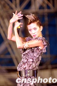 “為祖國驕傲,為香港放歌”慶祝香港回歸五周年大型演唱會二十七日晚在北京工人體育場舉行。圖為香港巨星梅艷芳在演唱會上傾情演唱。作者:武仲林