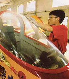 《新聞周刊》:中國(guó)天空將開(kāi)放 私人飛機(jī)欲起飛 2002年08月01日 11:42 ![]() 不能起飛的飛機(jī):科源飛機(jī)公司的市場(chǎng)人員在擦試飛機(jī)上的灰塵。由于空管限制每次升空均需復(fù)雜程序。