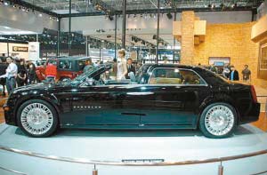 克萊斯勒300C Hollywood的軸距增大了45.7厘米,以充分利用封閉式乘客艙和敞開(kāi)式駕駛艙?巳R斯勒300C Hollywood采用柔軟的橘黃色皮革裝飾,并具有嵌入式雞尾酒區(qū)和香檳酒杯槽?巳R斯勒300C Hollywood配備了兩個(gè)39.1厘米的大型LCD娛樂(lè)顯示屏以及Harman音響系統(tǒng)?巳R斯勒300C Hollywood采用了反開(kāi)式車(chē)門(mén),并裝配了Super Alloy的22英寸特制車(chē)輪。