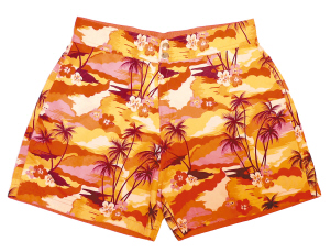 記者在廣州各大商場(chǎng)沙灘褲專柜看到,除了艷麗的花案外,還有很多是卡通圖案的設(shè)計(jì)。浩沙專柜店員告訴記者,這類(lèi)沙灘褲面料多數(shù)是滌綸和棉,質(zhì)地好、圖案別致;有些款式還可以雙面穿,一面是純色,適合在家里和外出逛街時(shí)穿,一面是花案,適合沙灘散步穿。