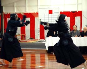 炎炎夏日,劍道練習(xí)者穿著嚴密的道服,在一個沒有空調(diào)的屋子里相互吶喊著競擊。桑拿天,桑拿般的運動卻依然不減劍道愛好者的熱情,武士精神傳達出的意志與精神讓這項運動變得更加富有了神秘感與誘惑力,而健身、塑體的功能也早已經(jīng)幻化在了每一個細節(jié)當中。