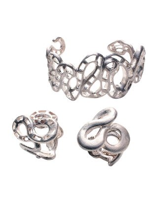 今季的首飾作品,也嘗試用圖案和符號重現(xiàn)這種魔力。如用精貴青銅鏈子上的原創(chuàng)不對稱圓形設(shè)計,同天然木材和新奇式樣形成的樸實色調(diào)結(jié)合在一起,形成帶有魔力保護色彩的“眼睛”符號;又如用純銀和青銅造型與皮革、石頭組合在一起表現(xiàn)自然界。另外,“蛇”形也大量被運用在此系列中,創(chuàng)造“糾纏不清”的超長項鏈、神秘的手鐲及超大戒指。(來源:信息時報;作者:裴靜怡)