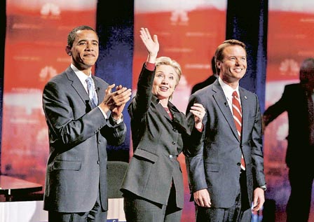 正在沖刺初選的美國前第一夫人希拉里·克林頓在從拉斯維加斯飛往內(nèi)華達(dá)的競選專機(jī)上,出人意料地模仿空姐的口吻,對媒體記者和競選幕僚致以調(diào)侃式的問候,向人們展示了“鐵娘子”剛強(qiáng)外表下的幽默風(fēng)趣一面。分析人士指出,希拉里顯然總結(jié)了不久前“眼淚門”的成功經(jīng)驗(yàn),繼續(xù)軟化自己的形象,以此拉近與選民的距離。