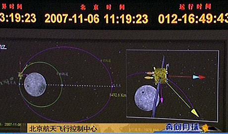 嫦娥一號(hào)衛(wèi)星已經(jīng)做好發(fā)動(dòng)機(jī)開機(jī)準(zhǔn)備工作,相關(guān)近月制動(dòng)的控制參數(shù)已經(jīng)注入,第二次近月制動(dòng)正在實(shí)施過程中。