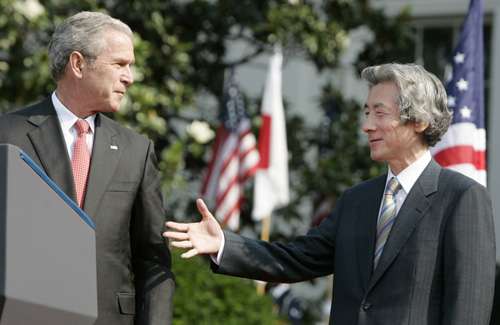 文章認(rèn)為,“小泉布什組合”的共同表演,首先是提升同盟地位,擴(kuò)展合作范圍。日美首腦發(fā)表的題為《新世紀(jì)的日美同盟》的一份聯(lián)合文件稱,兩國擁有共同的價(jià)值觀,擁有共同的利益,肩負(fù)共同應(yīng)對(duì)亞太地區(qū)安全環(huán)境變化帶來挑戰(zhàn)的責(zé)任。顯然,提升和擴(kuò)展同盟關(guān)系是美日兩國出于自身利益的共同需求。一家日本媒體說得很直白:“新世紀(jì)的日美同盟就是要將日美兩國的軍事合作擴(kuò)大到全球范圍”。從美方而言,期待日本對(duì)于美國全球戰(zhàn)略保持亦步亦趨的同時(shí),繼續(xù)發(fā)揮無可替代的“取款機(jī)”作用。從日方而言,已經(jīng)無意自行構(gòu)筑外交方略,只是一心借助美國保駕護(hù)航,不斷突破傳統(tǒng)框架和憲法束縛,謀求早日成為政治大國。當(dāng)然,布什破格接待小泉的用意,除了表示安撫和贊賞之外,還希望對(duì)小泉后任產(chǎn)生示范作用:像小泉那樣言聽計(jì)從。