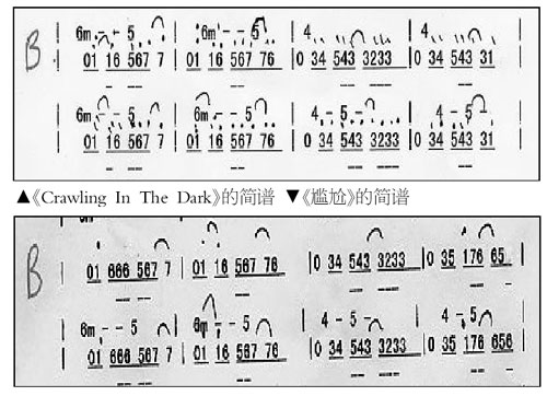 而就在記者采訪結(jié)束后,鑒于斌迷們一再要求,方圓在她的博客中又貼出了兩首歌曲的“和弦進(jìn)行”部分樂譜作為回應(yīng),并做出了專業(yè)的解釋。不過記者也意外發(fā)現(xiàn),這次在方圓的博客中又明確指出,胡彥斌的歌曲中,除了《皇帝》與Seven的《熱情》極其相似外,還有《情不自禁》與艾薇兒《WhoKnows》、《你這么晚了還沒睡》與Usher《Burn》、《尷尬》和《CrawlingInTheDark》都非常相似,并毫不客氣地在博客中貼出了這幾首歌的和弦樂譜和簡(jiǎn)譜,以便大家考證。(記者吳冬妮)