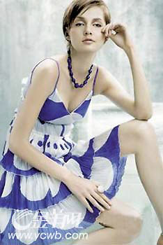 2006年的連衣裙也被地中海的風(fēng)暴所侵襲,在服飾顏色上,直逼自然的色彩成為流行重點。在常見的“地中海風(fēng)格”中,藍與白是主打色彩,藍色代表海洋,白色代表純潔的日光。