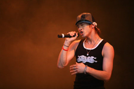 張文謙(Marcus)一出場(chǎng),觀眾席里女生的尖叫便排山倒海,從未間斷過(guò),由此證明這位帥氣的陽(yáng)光大男孩的人氣可見(jiàn)一斑。當(dāng)然,Marcus也未辜負(fù)觀眾的期望,舞臺(tái)上賣(mài)力的舞蹈與盡情的歌唱博得了許多好評(píng),讓不少女生為之瘋狂。雖然其伴舞陣容并不如凌蕾?gòu)?qiáng)大,但身為街舞的個(gè)中好手,其一人的精彩舞蹈便使在場(chǎng)觀眾佩服得五體投地,不得不報(bào)以熱烈的掌聲。對(duì)于這個(gè)能歌善舞的俊秀男孩,特此頒發(fā)帥氣十足最佳形象獎(jiǎng)。
