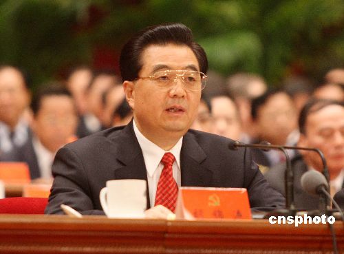 十月二十一日,中國(guó)共產(chǎn)黨第十七次全國(guó)代表大會(huì)在北京人民大會(huì)堂閉幕,中共中央總書記胡錦濤發(fā)表講話。中新社發(fā) 毛建軍 攝