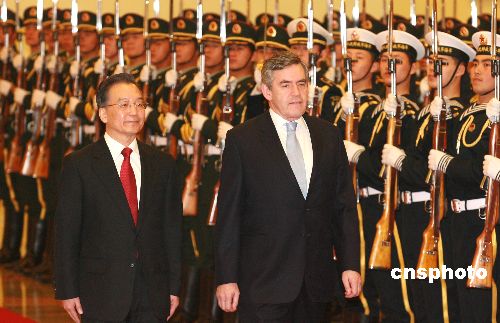 溫家寶主持儀式歡迎英國首相布朗