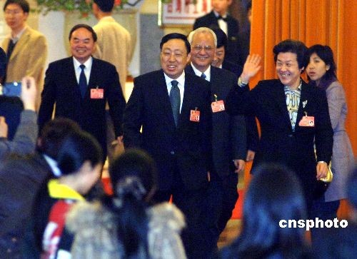 圖為會議結(jié)束后,新任部長們步出會場時向記者揮手致意。