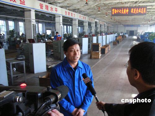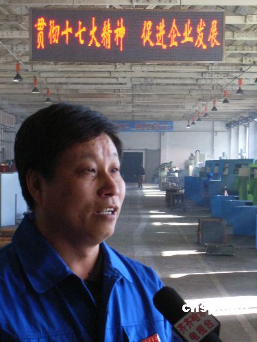 10月22日,齊齊哈爾建華公司黨委書記在接受采訪。當日,中國共產(chǎn)黨第十七屆中央委員會第一次全體會議勝利閉幕。國家老工業(yè)基地齊齊哈爾市的產(chǎn)業(yè)工人非常高興,中國兵器工業(yè)集團公司齊齊哈爾建華公司黨委書記谷云龍代表全體員工表示:堅決擁護十七大的各項決議,擁護新一屆中央領(lǐng)導(dǎo)集體,緊密地團結(jié)在黨中央周圍,不斷增強自主創(chuàng)新能力,為國家發(fā)展,社會和諧人民進步多做貢獻。中新社發(fā) 王云龍 攝
