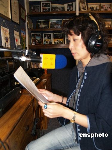 當(dāng)?shù)貢r(shí)間3月13日早上,AM1370洛杉磯電臺(tái)播音員郭丹正在播報(bào)“政協(xié)第十一屆全國(guó)委員會(huì)選出領(lǐng)導(dǎo)人”的新聞。連日來(lái),洛杉磯的華人華僑極為關(guān)注“兩會(huì)”新聞,他們積極收聽(tīng)AM1370洛城電臺(tái)播出的中國(guó)國(guó)際廣播電臺(tái)的有關(guān)“兩會(huì)”的報(bào)導(dǎo)。中新社發(fā) 盧威 攝