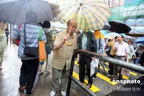 四月十九日,受熱帶風暴“浣熊”影響,香港天文臺發(fā)出三號強風及紅雨警告信號,香港市區(qū)狂風暴雨,給出外的市民帶來諸多不便。天文臺預測未來兩日不時會有大雨。中新社發(fā) 洪少葵 攝