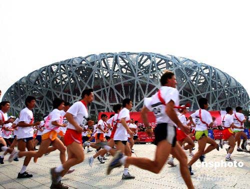 北京奧運(yùn)會(huì)倒計(jì)時(shí)100天群眾馬拉松接力活動(dòng)暨2008年北京國(guó)際長(zhǎng)跑節(jié),4月30日上午在北京國(guó)家體育場(chǎng)公共區(qū)隆重舉行,活動(dòng)中馬拉松接力賽、群眾建身長(zhǎng)跑、群眾體育展示等內(nèi)容豐富多彩、氣氛活躍祥和。此項(xiàng)活動(dòng)由國(guó)家體育總局、中國(guó)奧委會(huì)、北京市政府、第29屆奧林匹克運(yùn)動(dòng)會(huì)組委會(huì)主辦。 中新社發(fā) 宋吉河 攝