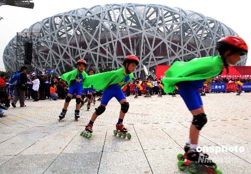 北京奧運(yùn)會(huì)倒計(jì)時(shí)100天群眾馬拉松接力活動(dòng)暨2008年北京國際長跑節(jié),4月30日上午在北京國家體育場公共區(qū)隆重舉行,活動(dòng)中馬拉松接力賽、群眾建身長跑、群眾體育展示等內(nèi)容豐富多彩、氣氛活躍祥和。此項(xiàng)活動(dòng)由國家體育總局、中國奧委會(huì)、北京市政府、第29屆奧林匹克運(yùn)動(dòng)會(huì)組委會(huì)主辦。中新社發(fā) 宋吉河 攝