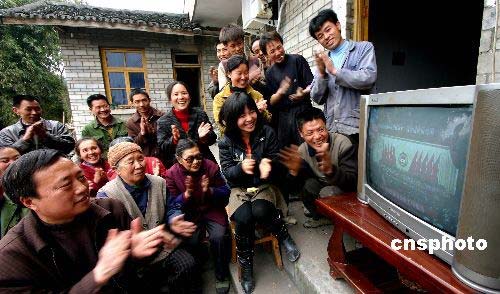 3月3日,重慶市永川區(qū)雙石鎮(zhèn)五龍橋村的村民在收看全國政協(xié)十一屆一次會議開幕式盛況。中新社發(fā) 陳仕川 攝