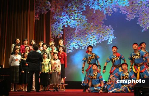 圖為上海全體女代表(左)與藝術(shù)界聯(lián)袂演唱《天堂》。