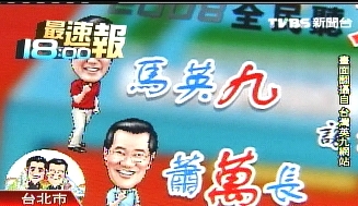 影片配音又說:“2008全民聽九萬,馬英九、蕭萬長(zhǎng)讓您久等了!”
