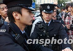 二零零三年香港特別行政區(qū)區(qū)議會選舉投票日十一月二十三日在香港十八個區(qū)同時展開,為保障選舉投票安全,警察在投票站加強治安管理。 中新社記者:錢興強