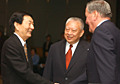 香港特首董建華、國際會計師聯(lián)合會會長雷尼·雷克爾等陪同朱镕基出席會計師大會.