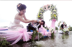 水下婚禮、自行車婚禮、熱氣球婚禮……現(xiàn)在婚禮上的花樣越來越多,而在婚禮現(xiàn)場上演一場屬于自己的愛情電影,如今成了80后白領新人的最新流行時尚……